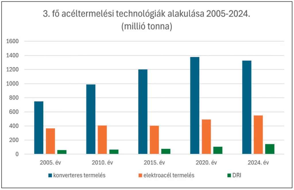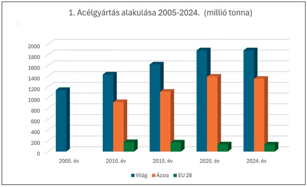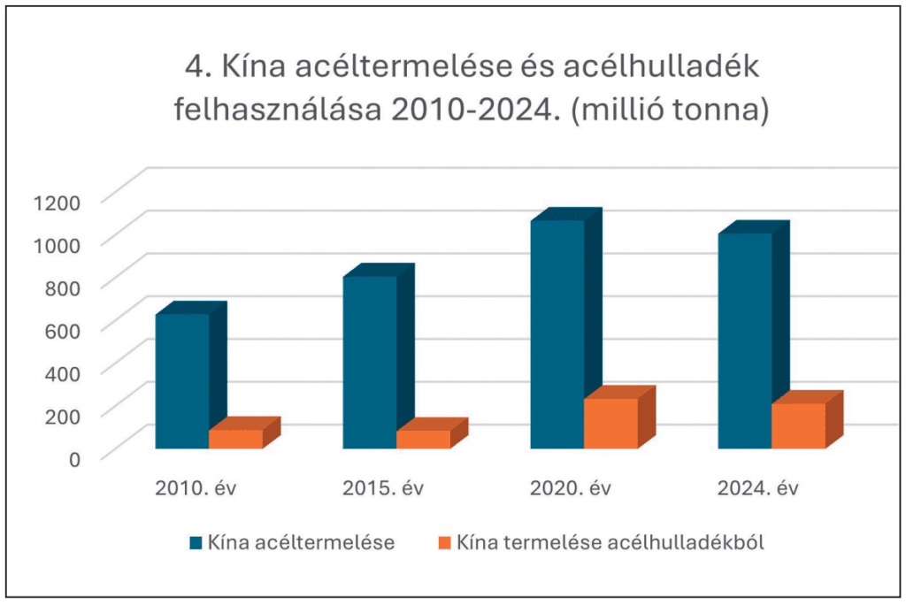 Amikor a környezeti hatásokra akarunk következtetni, akkor néznünk kell az acélgyártási technológiák alakulását, a mennyiségi volumeneket, illetve a hulladékfelhasználás rányát. A konverteres technológiákat, illetve azoknak a sokféle kapcsolódó szennyező környezeti hatásait Európa bünteti, száműzi. Ahogy égül civil tiltakozásra bezárta a Mittal 2024-ben a zenicai kokszolót is, vagy ahogy nem kis részben az európai CO2-kvóta nyomására befellegzett a dunaújvárosi acélműnek. De a szá madatokat látva arra következtethetünk megalapozottan, hogy a szennyező termelés nem szűnt meg, hanem egyszerűen Kínába (és Indiába) költözött, illetve ott környezeti-egészségi akadályok nélkül futott fel a globális piaci igényeknek megfelelően.
